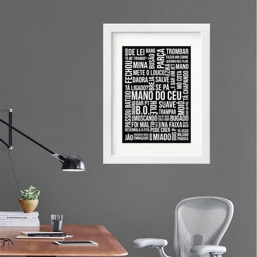 Quadro gírias de são paulo - 60x48cm Moldura: madeira preta Informações do produto tire todas as suas dúvidas no descritivo abaixo: decoração para quarto, sala, cozinha, escritório, área gourmet e muito mais. Chega de paredes vazias medidas - cada peça tem 60x48cm . Material do papel - papel fotográfico brilhante de altíssima resolução acabamento - todos os quadros são acompanhados de vidro para proteção da imagem. - moldura em madeira maciça na cor preta ou branca conforme produto escolhido e pendurador. - paspatur branco com 7cm de largura - os quadros são embalados de forma segura com plástico bolha com camada dupla de acordo com o tamanho dos quadros. Garantia - garantia de 3 meses. Meu quadro chegou. Como posso fixá-lo Você precisa apenas de um martelo e um prego, pois os quadros já vão acompanhados de penduradores. Esta é a forma mais indicada. Como posso limpar meu quadro A limpeza é feita como um móvel comum da sua casa. Apenas um pano seco ou espanador são suficientes para tal