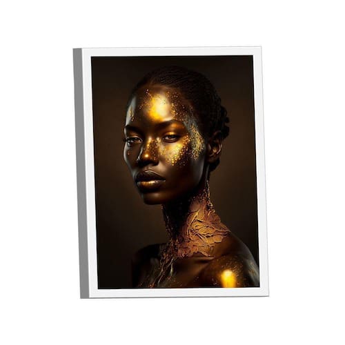 Quadro Golden Black Woman -- Br Artes Quadro Golden Black Woman -- BR ARTES Moldura Branca - Gigante 180x105 - - Qualidade Premium (padrão museu)