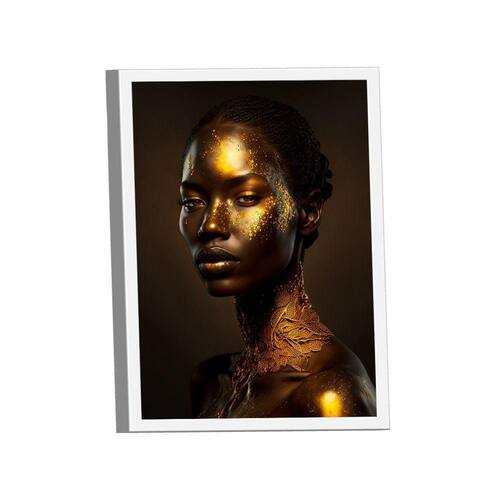 Quadro Golden Black Woman -- Br Artes Quadro Golden Black Woman -- BR ARTES Moldura Branca - Pequeno 60x40 - - Qualidade Premium (padrão museu)