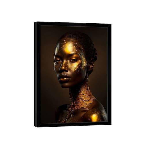 Quadro Golden Black Woman -- Br Artes Quadro Golden Black Woman -- BR ARTES Moldura Preta - Gigante 180x105 - - Qualidade Premium (padrão museu)