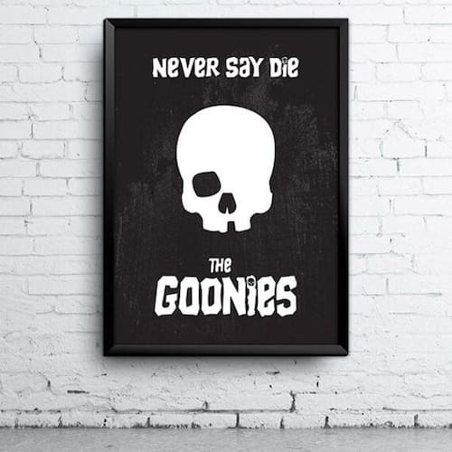 Quadro Goonies A4 Quadro com moldura em madeira. Fita dupla face para pendurar sem sujeira. Este produto é a opção ideal para quem deseja comodidade na hora de decorar. informações do produto Moldura com 2cm de largura em madeira pinus com excelente acabamento fosco e arte impressa em vinil fosco alta durabilidade. Acompanha fita dupla face já instalada para pendurar a moldura e embalagem protetora com cantoneiras que evitam danos durante o transporte. Opções de formatos A4: gravuras no tamanho 21x30cm - medida externa: 24x33cm Prazo de produção: 03 a 05 dias úteis após aprovação do pagamento. As cores podem ter pequenas variações em relação a imagem do seu monitor. As medidas podem sofrer mínimas variações. Marca: Sdesign Ean: 7898694731293