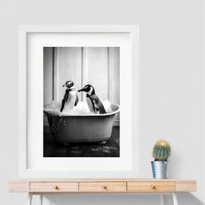 Quadro grande banheiro pinguins- 60x48cm Moldura: madeira branca Informações do produto tire todas as suas dúvidas no descritivo abaixo: decoração para quarto, sala, cozinha, escritório, área gourmet e muito mais. Chega de paredes vazias medidas - cada peça tem 60x48cm . Material do papel - papel fotográfico brilhante de altíssima resolução acabamento - todos os quadros são acompanhados de vidro para proteção da imagem. - moldura em madeira maciça na cor preta ou branca conforme produto escolhido e pendurador. - paspatur branco com 7cm de largura - os quadros são embalados de forma segura com plástico bolha com camada dupla de acordo com o tamanho dos quadros. - de 3 meses. Meu quadro chegou. Como posso fixá-lo Você precisa apenas de um martelo e um prego, pois os quadros já vão acompanhados de penduradores. Esta é a forma mais indicada. Como posso limpar meu quadro A limpeza é feita como um móvel comum da sua casa. Apenas um pano seco ou espanador são suficientes para tal Marca: Não Informado