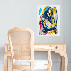 Quadro gravura mulher com raquete - tênis 33x24cm Cor: moldura preta Informações do produto tire todas as suas dúvidas no descritivo abaixo: decoração para quarto, sala, cozinha, escritório, área gourmet e muito mais. Chega de paredes vazias medidas - cada peça tem 33x24cm a4 . Material do papel - papel fotográfico brilhante de altíssima resolução acabamento - todos os quadros são acompanhados de uma película de acetato para proteção da imagem. - os quadros são embalados de forma segura com plástico bolha com camada dupla de acordo com o tamanho dos quadros. Garantia - garantia de 3 meses. Meu quadro chegou. Como posso fixá-lo Você precisa apenas de um martelo e um prego, pois os quadros já vão acompanhados de penduradores. Esta é a forma mais indicada. Caso prefira, você pode utilizar uma fita dupla face neste caso, sugerimos de alta qualidade para evitar que descole e seu quadro caia . Como posso limpar meu quadro A limpeza é feita como um móvel comum da sua casa. Apenas um pano seco ou espanador são suficientes para tal