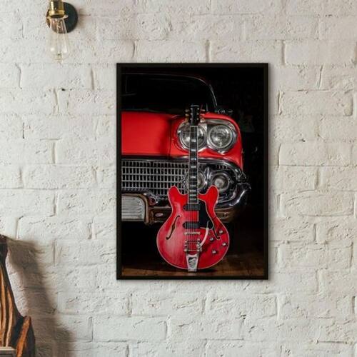 Quadro Guitarra E Carro Antigo Vermelhos 24X18Cm