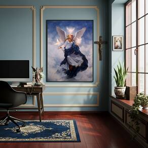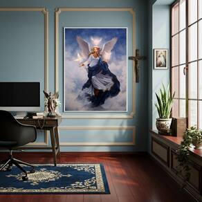 Quadro Haniel O Arcanjo do Amor e da Beleza Divina - 70x50cm - Cor: Moldura Branca