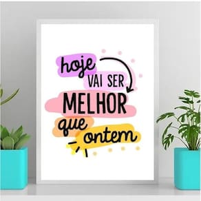 Quadro hoje vai ser melhor que ontem 24x18cm Moldura: madeira branca Informações do produto tire todas as suas dúvidas no descritivo abaixo: decoração para quarto, sala, cozinha, escritório, área gourmet e muito mais. Chega de paredes vazias medidas - cada peça tem 24x18cm a5 . Material do papel - papel fotográfico brilhante de altíssima resolução acabamento - todos os quadros são acompanhados de uma película de acetato para proteção da imagem. - os quadros são embalados de forma segura com plástico bolha com camada dupla de acordo com o tamanho dos quadros. Garantia - garantia de 3 meses. Meu quadro chegou. Como posso fixá-lo Você precisa apenas de um martelo e um prego, pois os quadros já vão acompanhados de penduradores. Esta é a forma mais indicada. Caso prefira, você pode utilizar uma fita dupla face neste caso, sugerimos de alta qualidade para evitar que descole e seu quadro caia . Como posso limpar meu quadro A limpeza é feita como um móvel comum da sua casa. Apenas um pano seco ou espanador são suficientes para tal