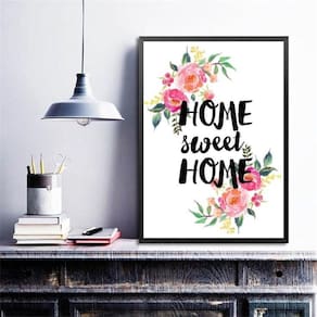 Quadro home sweet home - aquarela 24x18cm Moldura: madeira branca Informações do produto tire todas as suas dúvidas no descritivo abaixo: decoração para quarto, sala, cozinha, escritório, área gourmet e muito mais. Chega de paredes vazias medidas - cada peça tem 24x18cm a5 . Material do papel - papel fotográfico brilhante de altíssima resolução acabamento - todos os quadros são acompanhados de uma película de acetato para proteção da imagem. - os quadros são embalados de forma segura com plástico bolha com camada dupla de acordo com o tamanho dos quadros. Garantia - garantia de 3 meses. Meu quadro chegou. Como posso fixá-lo Você precisa apenas de um martelo e um prego, pois os quadros já vão acompanhados de penduradores. Esta é a forma mais indicada. Caso prefira, você pode utilizar uma fita dupla face neste caso, sugerimos de alta qualidade para evitar que descole e seu quadro caia . Como posso limpar meu quadro A limpeza é feita como um móvel comum da sua casa. Apenas um pano seco ou espanador são suficientes para tal