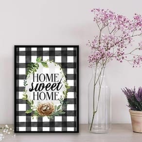 Quadro home sweet home xadrez 24x18cm Moldura: madeira branca Informações do produto tire todas as suas dúvidas no descritivo abaixo: decoração para quarto, sala, cozinha, escritório, área gourmet e muito mais. Chega de paredes vazias medidas - cada peça tem 24x18cm a5 . Material do papel - papel fotográfico brilhante de altíssima resolução acabamento - todos os quadros são acompanhados de uma película de acetato para proteção da imagem. - os quadros são embalados de forma segura com plástico bolha com camada dupla de acordo com o tamanho dos quadros. Garantia - garantia de 3 meses. Meu quadro chegou. Como posso fixá-lo Você precisa apenas de um martelo e um prego, pois os quadros já vão acompanhados de penduradores. Esta é a forma mais indicada. Caso prefira, você pode utilizar uma fita dupla face neste caso, sugerimos de alta qualidade para evitar que descole e seu quadro caia . Como posso limpar meu quadro A limpeza é feita como um móvel comum da sua casa. Apenas um pano seco ou espanador são suficientes para tal Ean: 7894410857285