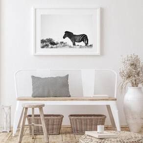 Quadro horizontal foto zebra - 60x48cm Moldura: madeira branca Informações do produto tire todas as suas dúvidas no descritivo abaixo: decoração para quarto, sala, cozinha, escritório, área gourmet e muito mais. Chega de paredes vazias medidas - cada peça tem 60x48cm . Material do papel - papel fotográfico brilhante de altíssima resolução acabamento - todos os quadros são acompanhados de vidro para proteção da imagem. - moldura em madeira maciça na cor preta ou branca conforme produto escolhido e pendurador. - paspatur branco com 7cm de largura - os quadros são embalados de forma segura com plástico bolha com camada dupla de acordo com o tamanho dos quadros. Garantia - garantia de 3 meses. Meu quadro chegou. Como posso fixá-lo Você precisa apenas de um martelo e um prego, pois os quadros já vão acompanhados de penduradores. Esta é a forma mais indicada. Como posso limpar meu quadro A limpeza é feita como um móvel comum da sua casa. Apenas um pano seco ou espanador são suficientes para tal