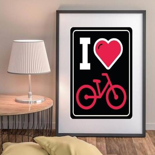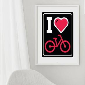 Quadro i love bike - 60x48cm Moldura: madeira preta Informações do produto tire todas as suas dúvidas no descritivo abaixo: decoração para quarto, sala, cozinha, escritório, área gourmet e muito mais. Chega de paredes vazias medidas - cada peça tem 60x48cm . Material do papel - papel fotográfico brilhante de altíssima resolução acabamento - todos os quadros são acompanhados de vidro para proteção da imagem. - moldura em madeira maciça na cor preta ou branca conforme produto escolhido e pendurador. - paspatur branco com 7cm de largura - os quadros são embalados de forma segura com plástico bolha com camada dupla de acordo com o tamanho dos quadros. Garantia - garantia de 3 meses. Meu quadro chegou. Como posso fixá-lo Você precisa apenas de um martelo e um prego, pois os quadros já vão acompanhados de penduradores. Esta é a forma mais indicada. Como posso limpar meu quadro A limpeza é feita como um móvel comum da sua casa. Apenas um pano seco ou espanador são suficientes para tal