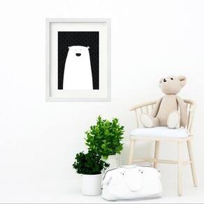 Quadro infantil urso branco e preto - 60x48cm Moldura: madeira preta Informações do produto tire todas as suas dúvidas no descritivo abaixo: decoração para quarto, sala, cozinha, escritório, área gourmet e muito mais. Chega de paredes vazias medidas - cada peça tem 60x48cm . Material do papel - papel fotográfico brilhante de altíssima resolução acabamento - todos os quadros são acompanhados de vidro para proteção da imagem. - moldura em madeira maciça na cor preta ou branca conforme produto escolhido e pendurador. - paspatur branco com 7cm de largura - os quadros são embalados de forma segura com plástico bolha com camada dupla de acordo com o tamanho dos quadros. Garantia - garantia de 3 meses. Meu quadro chegou. Como posso fixá-lo Você precisa apenas de um martelo e um prego, pois os quadros já vão acompanhados de penduradores. Esta é a forma mais indicada. Como posso limpar meu quadro A limpeza é feita como um móvel comum da sua casa. Apenas um pano seco ou espanador são suficientes para tal