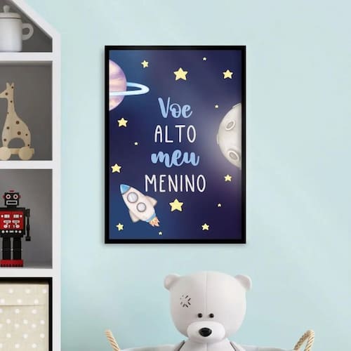 Com o Quadro Infantil Voe Alto Foguete Espaço, você terá a oportunidade de decorar sua casa ou escritório de forma única e encantadora. Não perca tempo e adquira já o seu!