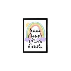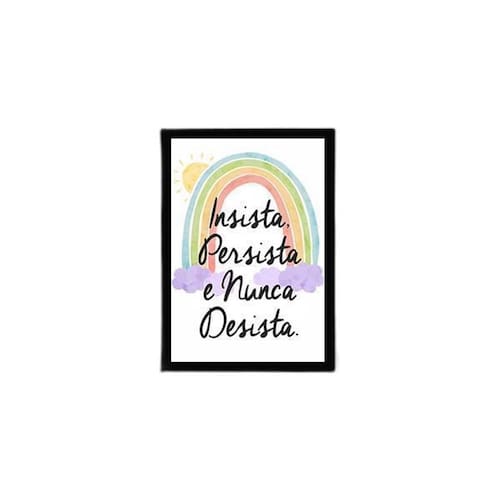 Quadro insista, persista e nunca desista 45x34cm - com vidro Moldura: madeira preta Informações do produto tire todas as suas dúvidas no descritivo abaixo: decoração para quarto, sala, cozinha, escritório, área gourmet e muito mais. Chega de paredes vazias medidas - cada peça tem 45x34cm a3 . Material do papel - papel fotográfico brilhante de altíssima resolução acabamento - todos os quadros são acompanhados de vidro para proteção da imagem. - moldura em madeira maciça na cor preta e pendurador . - os quadros são embalados de forma segura com plástico bolha com camada dupla de acordo com o tamanho dos quadros. - de 3 meses. Meu quadro chegou. Como posso fixá-lo Você precisa apenas de um martelo e um prego, pois os quadros já vão acompanhados de penduradores. Esta é a forma mais indicada. Como posso limpar meu quadro A limpeza é feita como um móvel comum da sua casa. Apenas um pano seco ou espanador são suficientes para tal