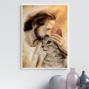 Quadro jesus acolhendo gatinho 33x24cm - com vidro Moldura: madeira branca Informações do produto tire todas as suas dúvidas no descritivo abaixo: decoração para quarto, sala, cozinha, escritório, área gourmet e muito mais. Chega de paredes vazias medidas - cada peça tem 33x24cm a4 . Material do papel - papel fotográfico brilhante de altíssima resolução acabamento - todos os quadros são acompanhados de vidro para proteção da imagem. - moldura em madeira maciça na cor preta ou branca conforme produto escolhido e pendurador . - os quadros são embalados de forma segura com plástico bolha com camada dupla de acordo com o tamanho dos quadros. Garantia - garantia de 3 meses. Meu quadro chegou. Como posso fixá-lo Você precisa apenas de um martelo e um prego, pois os quadros já vão acompanhados de penduradores. Esta é a forma mais indicada. Como posso limpar meu quadro A limpeza é feita como um móvel comum da sua casa. Apenas um pano seco ou espanador são suficientes para tal Ean: 7897128642679
