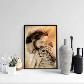 Quadro jesus acolhendo gatinho 45x34cm Moldura: madeira branca Informações do produto tire todas as suas dúvidas no descritivo abaixo: decoração para quarto, sala, cozinha, escritório, área gourmet e muito mais. Chega de paredes vazias. Medidas - cada peça tem 45x34cm a3 . Material do papel - papel fotográfico brilhante de altíssima resolução acabamento - todos os quadros são acompanhados de uma película de acetato para proteção da imagem. - os quadros são embalados de forma segura com plástico bolha com camada dupla de acordo com o tamanho dos quadros. Garantia - garantia de 3 meses. Meu quadro chegou. Como posso fixá-lo Você precisa apenas de um martelo e um prego, pois os quadros já vão acompanhados de penduradores. Esta é a forma mais indicada. Caso prefira, você pode utilizar uma fita dupla face neste caso, sugerimos de alta qualidade para evitar que descole e seu quadro caia . Como posso limpar meu quadro A limpeza é feita como um móvel comum da sua casa. Apenas um pano seco ou espanador são suficientes para tal