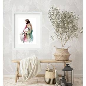 Quadro jesus com cordeiros aquarela - 60x48cm Moldura: madeira preta Informações do produto tire todas as suas dúvidas no descritivo abaixo: decoração para quarto, sala, cozinha, escritório, área gourmet e muito mais. Chega de paredes vazias medidas - cada peça tem 60x48cm . Material do papel - papel fotográfico brilhante de altíssima resolução acabamento - todos os quadros são acompanhados de vidro para proteção da imagem. - moldura em madeira maciça na cor preta ou branca conforme produto escolhido e pendurador. - paspatur branco com 7cm de largura - os quadros são embalados de forma segura com plástico bolha com camada dupla de acordo com o tamanho dos quadros. Garantia - garantia de 3 meses. Meu quadro chegou. Como posso fixá-lo Você precisa apenas de um martelo e um prego, pois os quadros já vão acompanhados de penduradores. Esta é a forma mais indicada. Como posso limpar meu quadro A limpeza é feita como um móvel comum da sua casa. Apenas um pano seco ou espanador são suficientes para tal