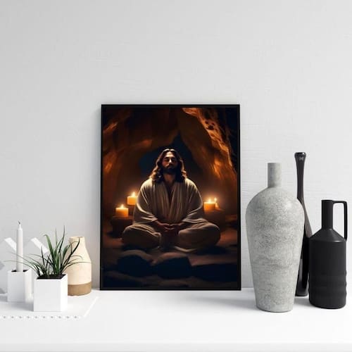 Quadro jesus cristo meditando 45x34cm Moldura: madeira preta Informações do produto tire todas as suas dúvidas no descritivo abaixo: decoração para quarto, sala, cozinha, escritório, área gourmet e muito mais. Chega de paredes vazias. Medidas - cada peça tem 45x34cm a3 . Material do papel - papel fotográfico brilhante de altíssima resolução acabamento - todos os quadros são acompanhados de uma película de acetato para proteção da imagem. - os quadros são embalados de forma segura com plástico bolha com camada dupla de acordo com o tamanho dos quadros. Garantia - garantia de 3 meses. Meu quadro chegou. Como posso fixá-lo Você precisa apenas de um martelo e um prego, pois os quadros já vão acompanhados de penduradores. Esta é a forma mais indicada. Caso prefira, você pode utilizar uma fita dupla face neste caso, sugerimos de alta qualidade para evitar que descole e seu quadro caia . Como posso limpar meu quadro A limpeza é feita como um móvel comum da sua casa. Apenas um pano seco ou espanador são suficientes para tal