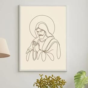 Quadro jesus one line - marrom 33x24cm Cor: moldura preta Informações do produto tire todas as suas dúvidas no descritivo abaixo: decoração para quarto, sala, cozinha, escritório, área gourmet e muito mais. Chega de paredes vazias medidas - cada peça tem 33x24cm a4 . Material do papel - papel fotográfico brilhante de altíssima resolução acabamento - todos os quadros são acompanhados de uma película de acetato para proteção da imagem. - os quadros são embalados de forma segura com plástico bolha com camada dupla de acordo com o tamanho dos quadros. - de 3 meses. Meu quadro chegou. Como posso fixá-lo Você precisa apenas de um martelo e um prego, pois os quadros já vão acompanhados de penduradores. Esta é a forma mais indicada. Caso prefira, você pode utilizar uma fita dupla face neste caso, sugerimos de alta qualidade para evitar que descole e seu quadro caia . Como posso limpar meu quadro A limpeza é feita como um móvel comum da sua casa. Apenas um pano seco ou espanador são suficientes para tal Marca: Não Informado