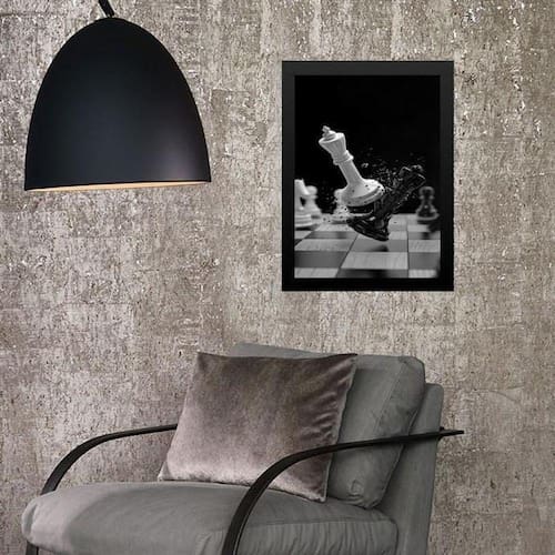 Quadro jogo xadrez-preto e branco 33x24cm - com vidro Moldura: madeira preta Informações do produto tire todas as suas dúvidas no descritivo abaixo: decoração para quarto, sala, cozinha, escritório, área gourmet e muito mais. Chega de paredes vazias medidas - cada peça tem 33x24cm a4 . Material do papel - papel fotográfico brilhante de altíssima resolução acabamento - todos os quadros são acompanhados de vidro para proteção da imagem. - moldura em madeira maciça na cor preta ou branca conforme produto escolhido e pendurador . - os quadros são embalados de forma segura com plástico bolha com camada dupla de acordo com o tamanho dos quadros. Garantia - garantia de 3 meses. Meu quadro chegou. Como posso fixá-lo Você precisa apenas de um martelo e um prego, pois os quadros já vão acompanhados de penduradores. Esta é a forma mais indicada. Como posso limpar meu quadro A limpeza é feita como um móvel comum da sua casa. Apenas um pano seco ou espanador são suficientes para tal Homologação Inmetro: CE-BRI/ICEPEX-N 01264-25-3