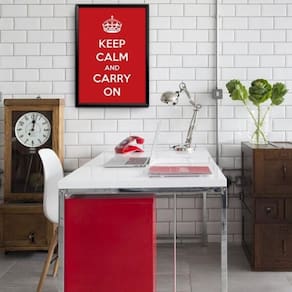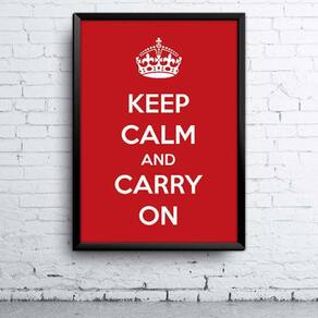 Quadro Keep Calm 1 A4 Quadro com moldura em madeira. Fita dupla face para pendurar sem sujeira. Este produto é a opção ideal para quem deseja comodidade na hora de decorar. informações do produto Moldura com 2cm de largura em madeira pinus com excelente acabamento fosco e arte impressa em vinil fosco alta durabilidade. Acompanha fita dupla face já instalada para pendurar a moldura e embalagem protetora com cantoneiras que evitam danos durante o transporte. Opções de formatos A4: gravuras no tamanho 21x30cm - medida externa: 24x33cm Prazo de produção: 03 a 05 dias úteis após aprovação do pagamento. As cores podem ter pequenas variações em relação a imagem do seu monitor. As medidas podem sofrer mínimas variações. Marca: Sdesign