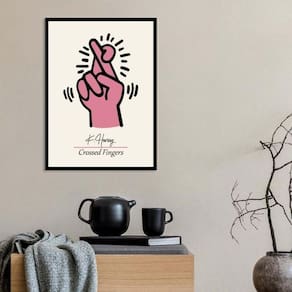 Quadro keith haring crossed fingers - rosa 45x34cm Moldura: madeira preta Informações do produto tire todas as suas dúvidas no descritivo abaixo: decoração para quarto, sala, cozinha, escritório, área gourmet e muito mais. Chega de paredes vazias. Medidas - cada peça tem 45x34cm a3 . Material do papel - papel fotográfico brilhante de altíssima resolução acabamento - todos os quadros são acompanhados de uma película de acetato para proteção da imagem. - os quadros são embalados de forma segura com plástico bolha com camada dupla de acordo com o tamanho dos quadros. Garantia - garantia de 3 meses. Meu quadro chegou. Como posso fixá-lo Você precisa apenas de um martelo e um prego, pois os quadros já vão acompanhados de penduradores. Esta é a forma mais indicada. Caso prefira, você pode utilizar uma fita dupla face neste caso, sugerimos de alta qualidade para evitar que descole e seu quadro caia . Como posso limpar meu quadro A limpeza é feita como um móvel comum da sua casa. Apenas um pano seco ou espanador são suficientes para tal