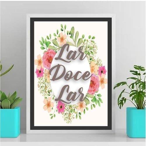 Quadro lar doce lar floral 45x34cm - com vidro Moldura: madeira branca