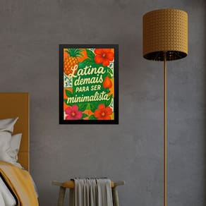 Quadro latina demais para ser minimalista 24x18cm - com vidro Cor: moldura preta Informações do produto tire todas as suas dúvidas no descritivo abaixo: decoração para quarto, sala, cozinha, escritório, área gourmet e muito mais. Chega de paredes vazias medidas - cada peça tem 24x18cm a5 . Material do papel - papel fotográfico brilhante de altíssima resolução acabamento - todos os quadros são acompanhados de vidro para proteção da imagem. - moldura em madeira maciça na cor preta ou branca conforme produto escolhido e pendurador . - os quadros são embalados de forma segura com plástico bolha com camada dupla de acordo com o tamanho dos quadros. - de 3 meses. Meu quadro chegou. Como posso fixá-lo Você precisa apenas de um martelo e um prego, pois os quadros já vão acompanhados de penduradores. Esta é a forma mais indicada. Como posso limpar meu quadro A limpeza é feita como um móvel comum da sua casa. Apenas um pano seco ou espanador são suficientes para tal