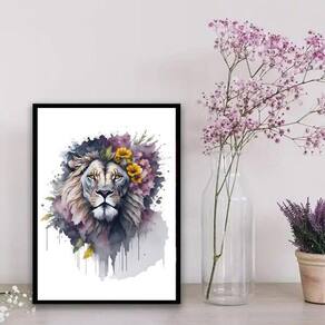 Quadro Decorativo Floral Leão Aquarela 24X18Cm