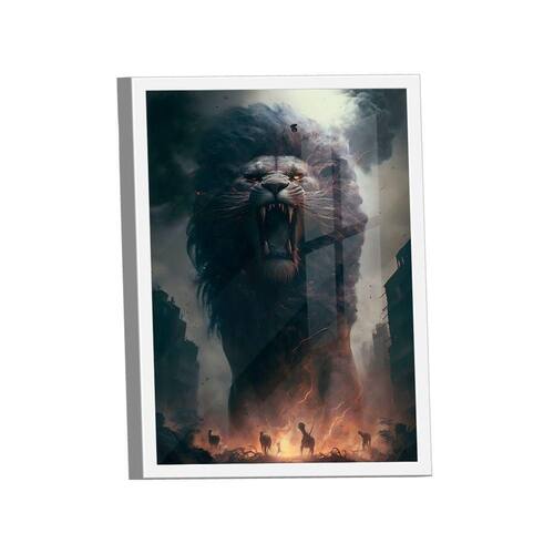 Quadro Leão Das Trevas -- Br Artes Quadro Leão das Trevas -- BR ARTES Moldura Branca e Vidro - Gigante 180x105 - - Qualidade Premium (padrão museu)