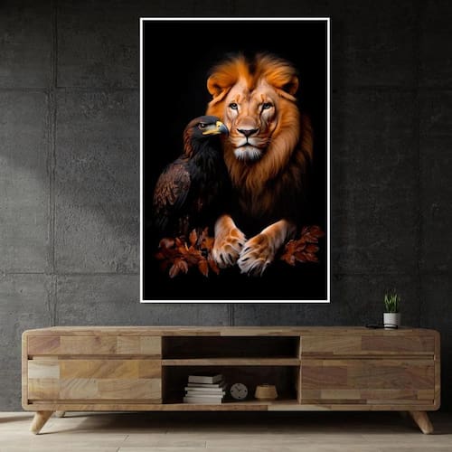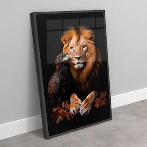 Quadro leão e águia - 70x50cm Cor: moldura preta Informações do produto tire todas as suas dúvidas no descritivo abaixo: decoração para quarto, sala, cozinha, escritório, área gourmet e muito mais. Chega de paredes vazias medidas - cada peça tem 70x50cm . Material do papel - papel fotográfico brilhante de altíssima resolução acabamento - todos os quadros são acompanhados de vidro para proteção da imagem. - moldura em madeira maciça na cor preta ou branca conforme produto escolhido e pendurador. - os quadros são embalados de forma segura com plástico bolha com camada dupla de acordo com o tamanho dos quadros. - de 3 meses. Meu quadro chegou. Como posso fixá-lo Você precisa apenas de um martelo e um prego, pois os quadros já vão acompanhados de penduradores. Esta é a forma mais indicada. Como posso limpar meu quadro A limpeza é feita como um móvel comum da sua casa. Apenas um pano seco ou espanador são suficientes para tal Marca: Não Informado Ean: 7901039764648