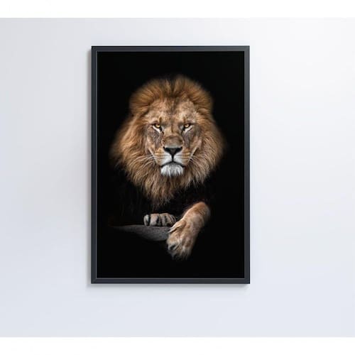 Quadro Leão Em Fundo Preto Medidas 80x120 Cm Tipo De Impressão Adesivo Fotográfico