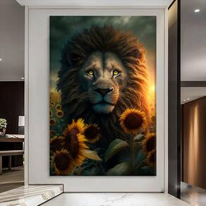 Quadro Leão Girassol -- Br Artes Médio 84x54 Quadro Leão Girassol -- BR ARTES Médio 84x54 - Especificações