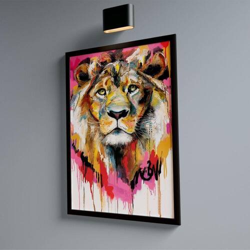 Quadro Leão Grafite Color Quadro Leão Grafite Color G (118x78) C/ Moldura Preta - - Qualidade Premium (padrão museu)