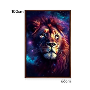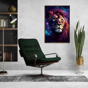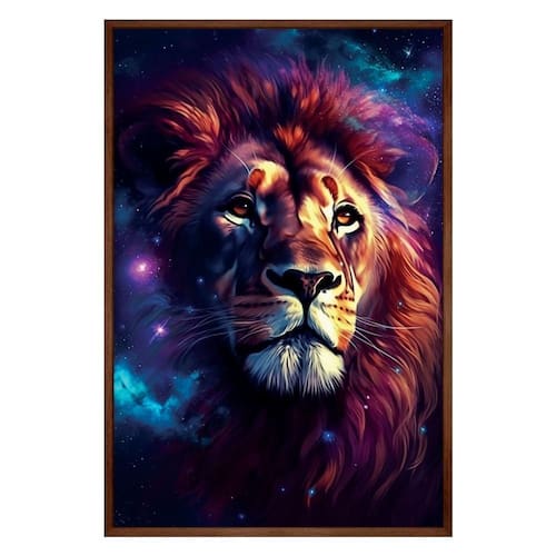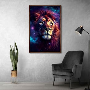 Quadro Decorativo Leão Judá Estrelas Universo Moldura Cx Alta 100x66cm
