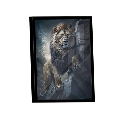 Quadro Leão Nas Montanhas -- BR ARTES Moldura Preta e Vidro - Gigante 180x105 -