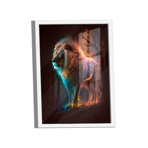 Quadro Leão Neon -- Br Artes Quadro Leão Neon -- BR ARTES Moldura Branca e Vidro - Pequeno 60x40 - - Qualidade Premium (padrão museu)