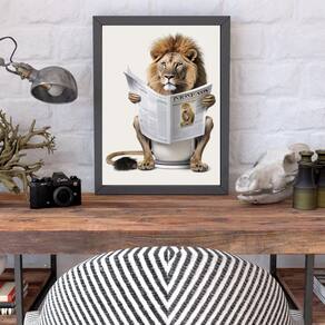 Quadro leão no banheiro lendo jornal 33x24cm - com vidro Moldura: madeira branca Informações do produto tire todas as suas dúvidas no descritivo abaixo: decoração para quarto, sala, cozinha, escritório, área gourmet e muito mais. Chega de paredes vazias medidas - cada peça tem 33x24cm a4 . Material do papel - papel fotográfico brilhante de altíssima resolução acabamento - todos os quadros são acompanhados de vidro para proteção da imagem. - moldura em madeira maciça na cor preta ou branca conforme produto escolhido e pendurador . - os quadros são embalados de forma segura com plástico bolha com camada dupla de acordo com o tamanho dos quadros. Garantia - garantia de 3 meses. Meu quadro chegou. Como posso fixá-lo Você precisa apenas de um martelo e um prego, pois os quadros já vão acompanhados de penduradores. Esta é a forma mais indicada. Como posso limpar meu quadro A limpeza é feita como um móvel comum da sua casa. Apenas um pano seco ou espanador são suficientes para tal