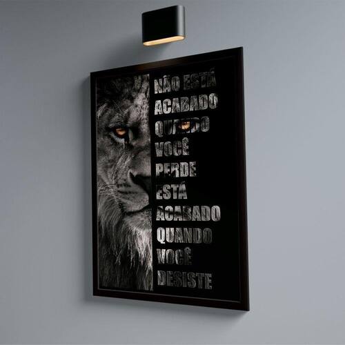 Quadro Leão Nunca Desista Quadro Leão Nunca Desista P (60x40) C/ Moldura Preta - Qualidade Premium (padrão museu)