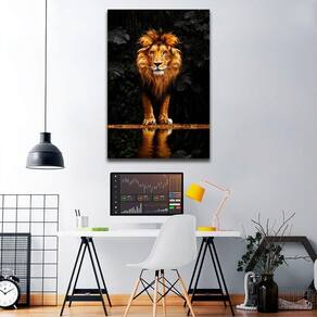 Quadro Leão Ouro Forest Pequeno 60x40 -