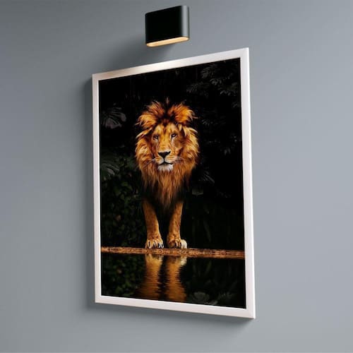Quadro Leão Ouro Forest M (84x54) C/ Moldura Branca -
