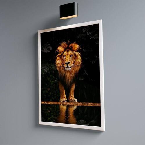 Quadro Leão Ouro Forest EGG 180x105 C/ Moldura Branca -