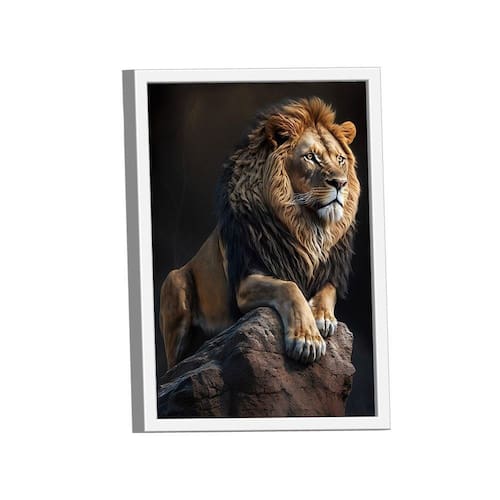 Quadro Leão Protetor -- Br Artes Quadro Leão Protetor -- BR ARTES Moldura Branca - Ultra Grande 150x100 - - Qualidade Premium (padrão museu)
