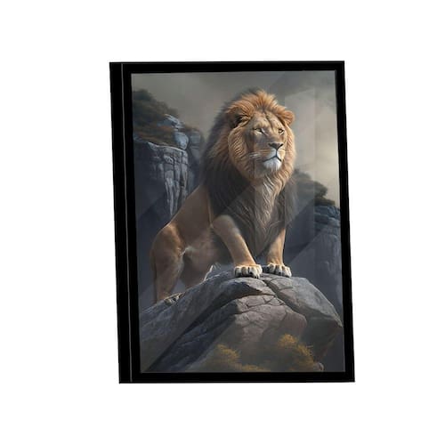Quadro Leão Soberano -- Br Artes Quadro Leão Soberano -- BR ARTES Moldura Preta e Vidro - Pequeno 60x40 - - Qualidade Premium (padrão museu)