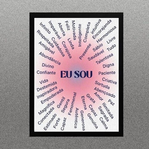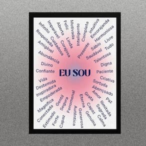 Quadro lei da atração - afirmações eu sou 33x24cm Moldura: madeira branca Informações do produto tire todas as suas dúvidas no descritivo abaixo: decoração para quarto, sala, cozinha, escritório, área gourmet e muito mais. Chega de paredes vazias medidas - cada peça tem 33x24cm a4 . Material do papel - papel fotográfico brilhante de altíssima resolução acabamento - todos os quadros são acompanhados de uma película de acetato para proteção da imagem. - os quadros são embalados de forma segura com plástico bolha com camada dupla de acordo com o tamanho dos quadros. Garantia - garantia de 3 meses. Meu quadro chegou. Como posso fixá-lo Você precisa apenas de um martelo e um prego, pois os quadros já vão acompanhados de penduradores. Esta é a forma mais indicada. Caso prefira, você pode utilizar uma fita dupla face neste caso, sugerimos de alta qualidade para evitar que descole e seu quadro caia . Como posso limpar meu quadro A limpeza é feita como um móvel comum da sua casa. Apenas um pano seco ou espanador são suficientes para tal