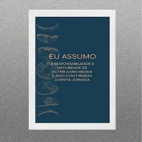 Quadro lei da atração - assumo responsabilidade 33x24cm Moldura: madeira branca Informações do produto tire todas as suas dúvidas no descritivo abaixo: decoração para quarto, sala, cozinha, escritório, área gourmet e muito mais. Chega de paredes vazias medidas - cada peça tem 33x24cm a4 . Material do papel - papel fotográfico brilhante de altíssima resolução acabamento - todos os quadros são acompanhados de uma película de acetato para proteção da imagem. - os quadros são embalados de forma segura com plástico bolha com camada dupla de acordo com o tamanho dos quadros. Garantia - garantia de 3 meses. Meu quadro chegou. Como posso fixá-lo Você precisa apenas de um martelo e um prego, pois os quadros já vão acompanhados de penduradores. Esta é a forma mais indicada. Caso prefira, você pode utilizar uma fita dupla face neste caso, sugerimos de alta qualidade para evitar que descole e seu quadro caia . Como posso limpar meu quadro A limpeza é feita como um móvel comum da sua casa. Apenas um pano seco ou espanador são suficientes para tal