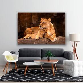 Quadro Leoa e Filhote -- BR ARTES Pequeno 60x40 -