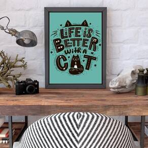 Quadro life is better with a cat 33x24cm - com vidro Moldura: madeira branca Informações do produto tire todas as suas dúvidas no descritivo abaixo: decoração para quarto, sala, cozinha, escritório, área gourmet e muito mais. Chega de paredes vazias medidas - cada peça tem 33x24cm a4 . Material do papel - papel fotográfico brilhante de altíssima resolução acabamento - todos os quadros são acompanhados de vidro para proteção da imagem. - moldura em madeira maciça na cor preta e pendurador . - os quadros são embalados de forma segura com plástico bolha com camada dupla de acordo com o tamanho dos quadros. Garantia - garantia de 3 meses. Meu quadro chegou. Como posso fixá-lo Você precisa apenas de um martelo e um prego, pois os quadros já vão acompanhados de penduradores. Esta é a forma mais indicada. Como posso limpar meu quadro A limpeza é feita como um móvel comum da sua casa. Apenas um pano seco ou espanador são suficientes para tal Ean: 7895142246293