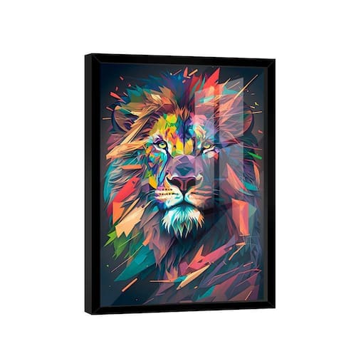 Quadro Lion Geometric Colors -- BR ARTES Moldura Preta e Vidro - Gigante 180x105 -