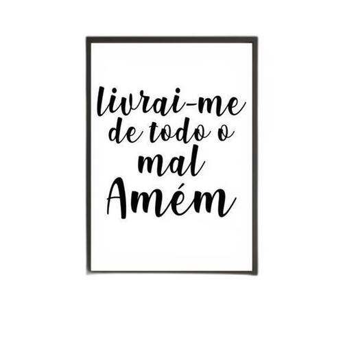 Quadro livrai-me de todo mal. Amém 33x24cm - com vidro Moldura: madeira branca Informações do produto tire todas as suas dúvidas no descritivo abaixo: decoração para quarto, sala, cozinha, escritório, área gourmet e muito mais. Chega de paredes vazias medidas - cada peça tem 33x24cm a4 . Material do papel - papel fotográfico brilhante de altíssima resolução acabamento - todos os quadros são acompanhados de vidro para proteção da imagem. - moldura em madeira maciça na cor preta e pendurador . - os quadros são embalados de forma segura com plástico bolha com camada dupla de acordo com o tamanho dos quadros. - de 3 meses. Meu quadro chegou. Como posso fixá-lo Você precisa apenas de um martelo e um prego, pois os quadros já vão acompanhados de penduradores. Esta é a forma mais indicada. Como posso limpar meu quadro A limpeza é feita como um móvel comum da sua casa. Apenas um pano seco ou espanador são suficientes para tal Marca: Não Informado
