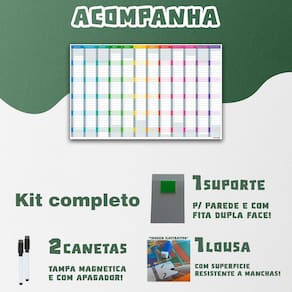Acompanha: 1 Lousa 2 Canetas 1 Suporte de Fixação Invista na sua organizacao e transforme sua rotina com o Planner Quadro Lousa Anual 2026. A experiencia de planejamento nunca foi tao simples e eficiente.